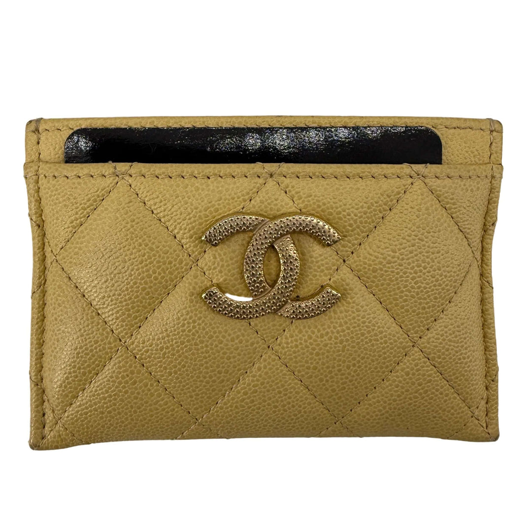 Chanel 22B Yellow Quilted Caviar Leather Card Holder with Gold CC Logo