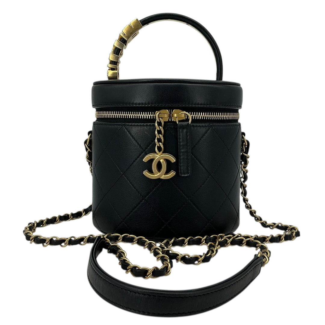 Chanel Black Quilted Calfskin Top Handle Vanity Case – Aged Gold Hardware (2020–2021)
