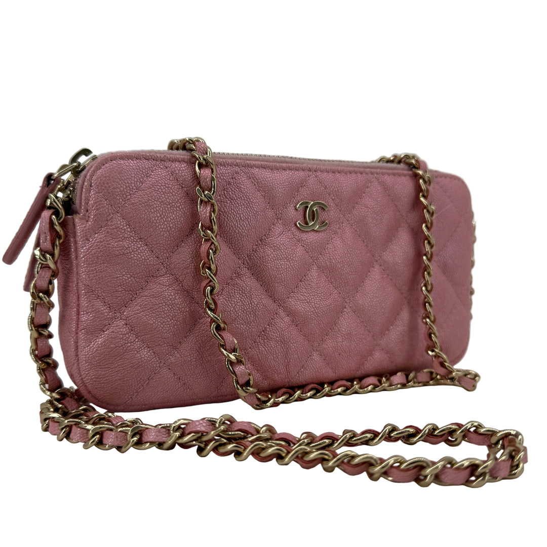 Chanel Pink Caviar Quilted Double Zip Clutch with Chain | LuxLoveLouis
